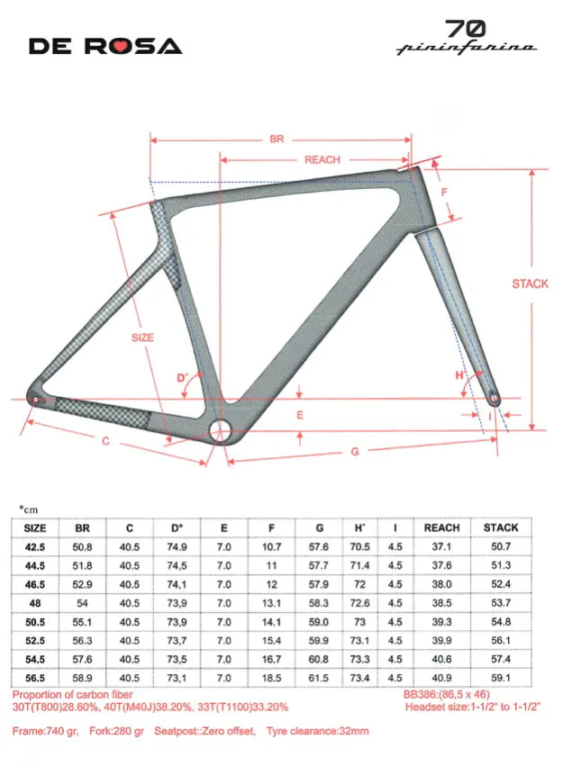 Frame: De Rosa Settanta - 730 g (size 54) - design by PININFARINA Fork: De Rosa Carbon - 280 g