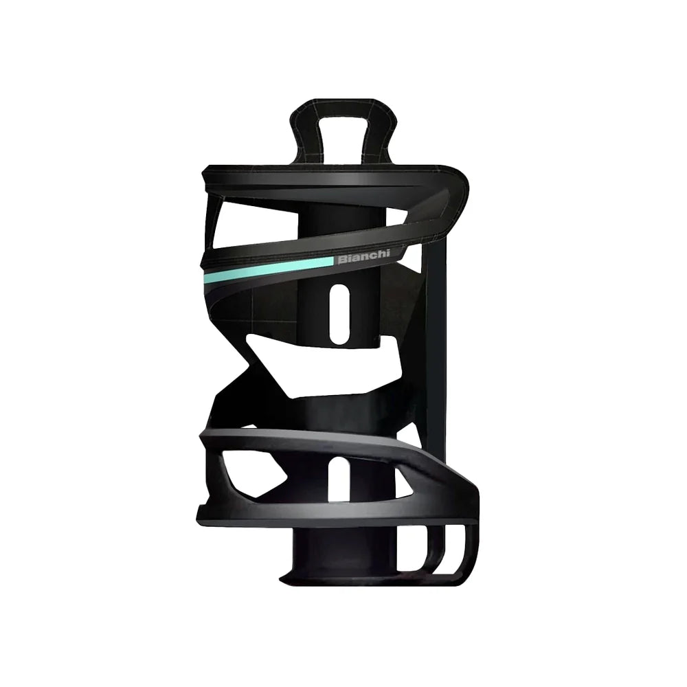 Colour and Finish: The cage features a sophisticated matt black finish with distinctive Celeste details, reflecting Bianchi's iconic branding and style.