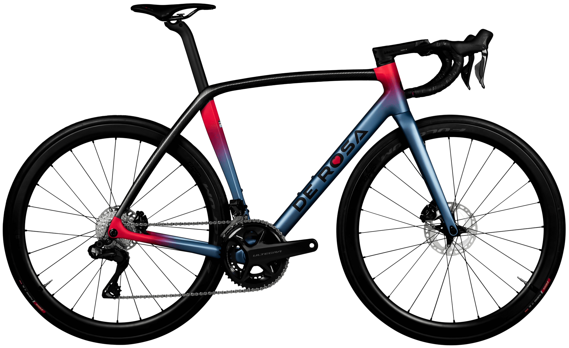 The new Idol has changed. It hasn’t lost a single gram of its identity, but it has lost almost 300 grams in weight. The down tube is bolder, wider, more assertive. The rear stays are sharper, more aerodynamic. The signature “arc slope” top tube now flows in bare carbon, carved in a harmonic wave of power and lightness, creating a racing-driven, striking visual impact. The design is clean, minimal, and sharp. Colors and shades alternate like full and empty spaces, like breath and heartbeat. It’s the same Idol as always. Just sharper. More modern. More De Rosa. Because every curve was redesigned with one goal: to strike the perfect balance between comfort and performance. A frame for Granfondo lovers who still dream of launching attacks on climbs.