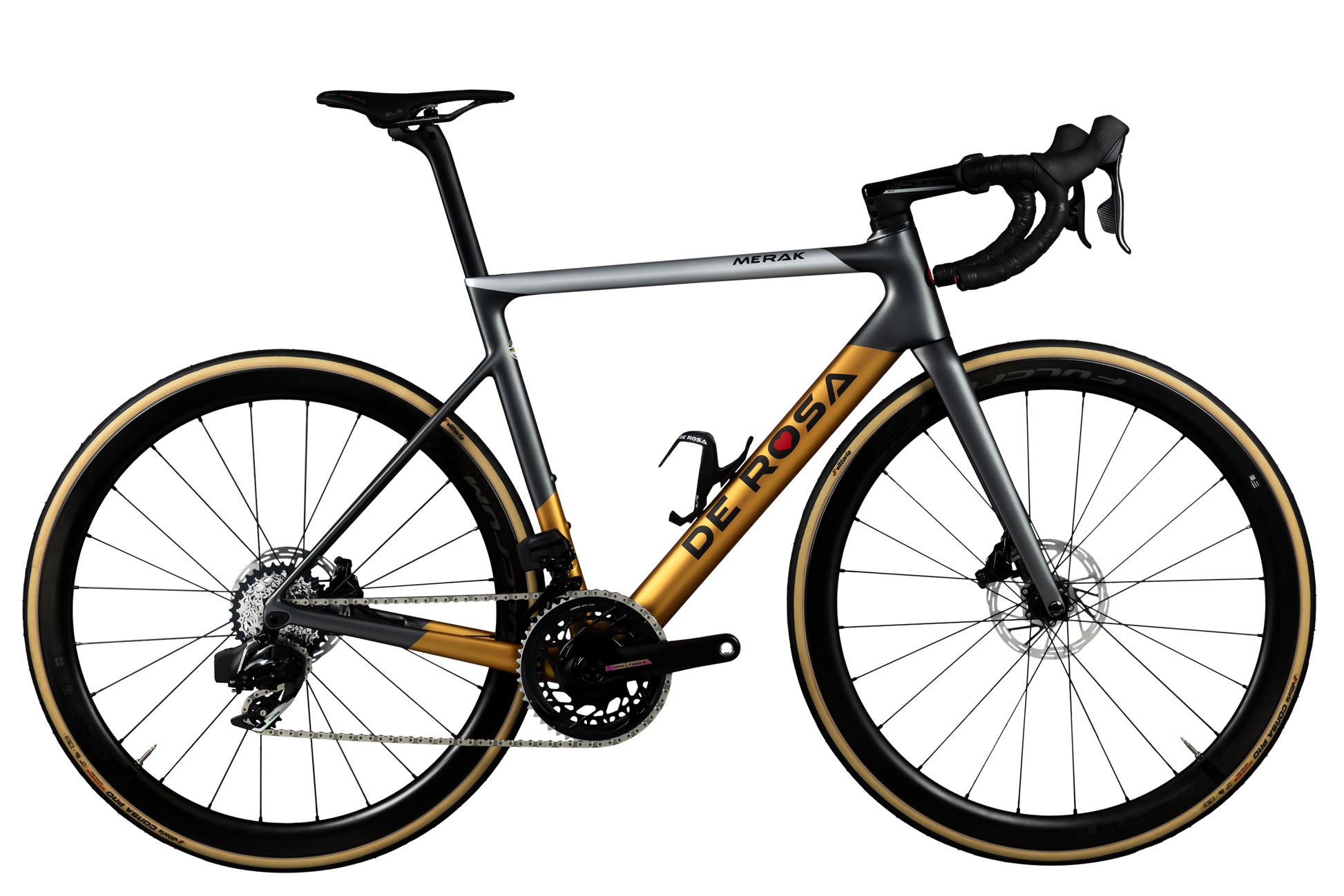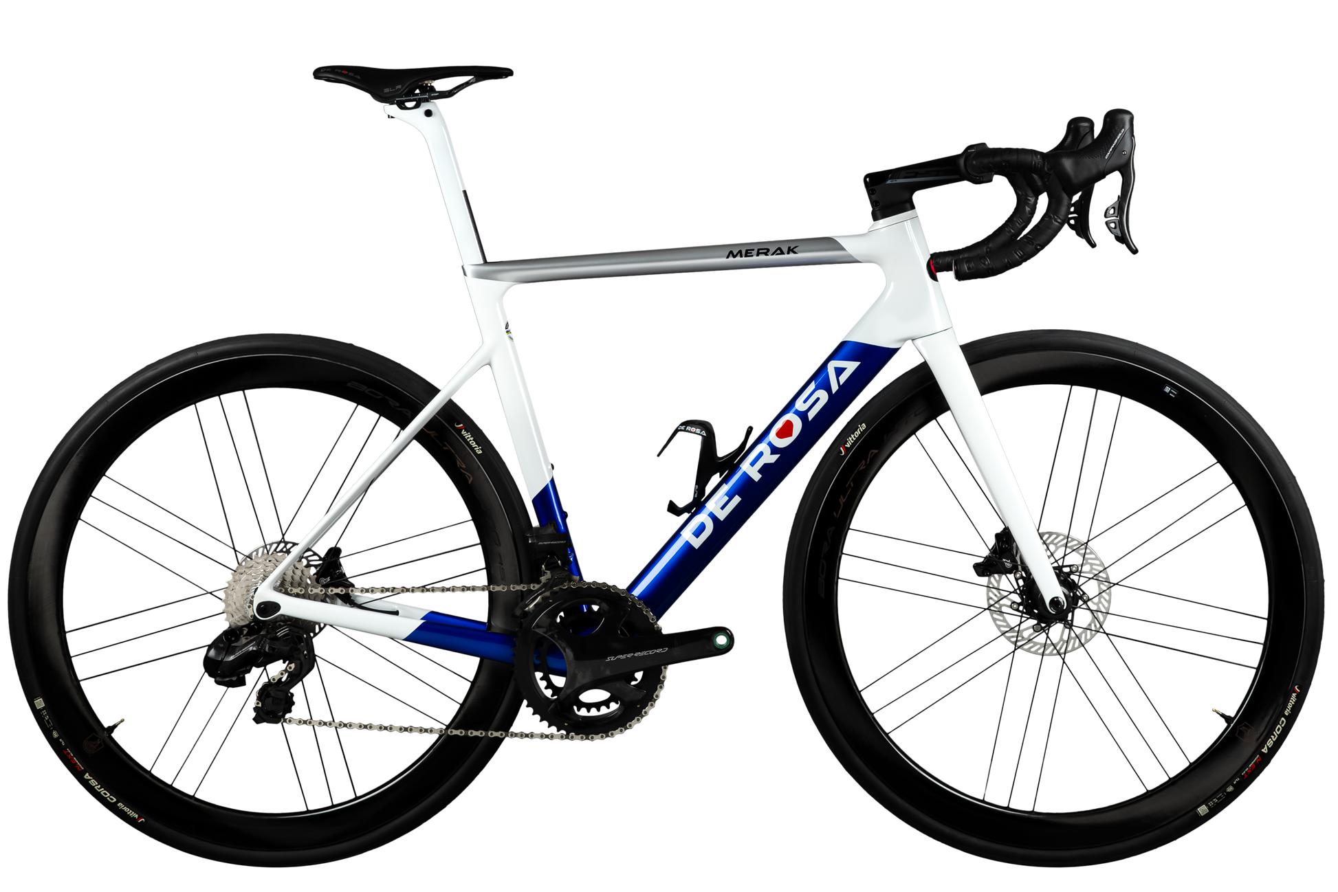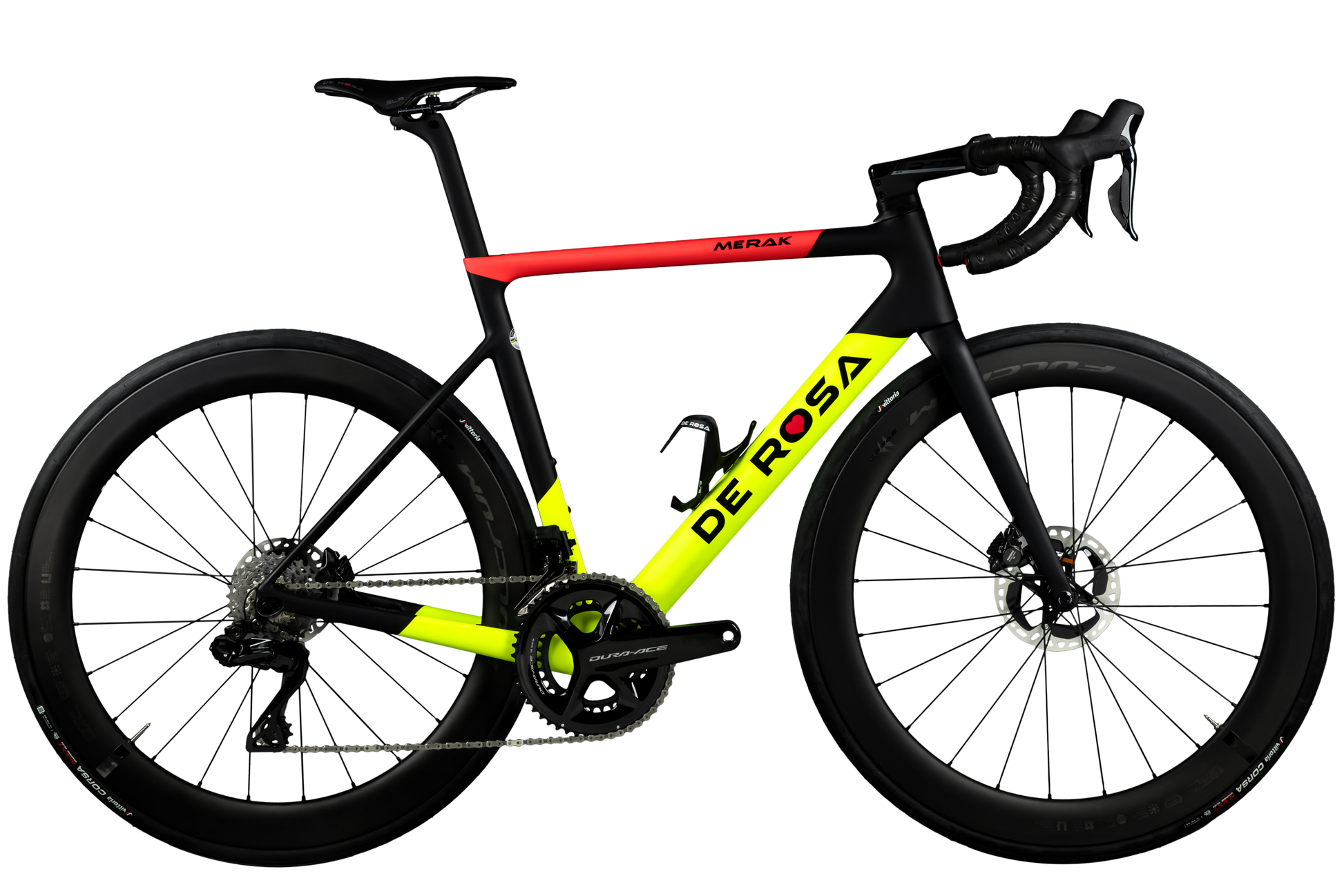 The MERAK is a true racing bike which combines light weight and performance. With its routes back in 2000 winning the World Championships the MERAK is the lightest frame in the De Rosa range — ideal to hunt for personal bests.