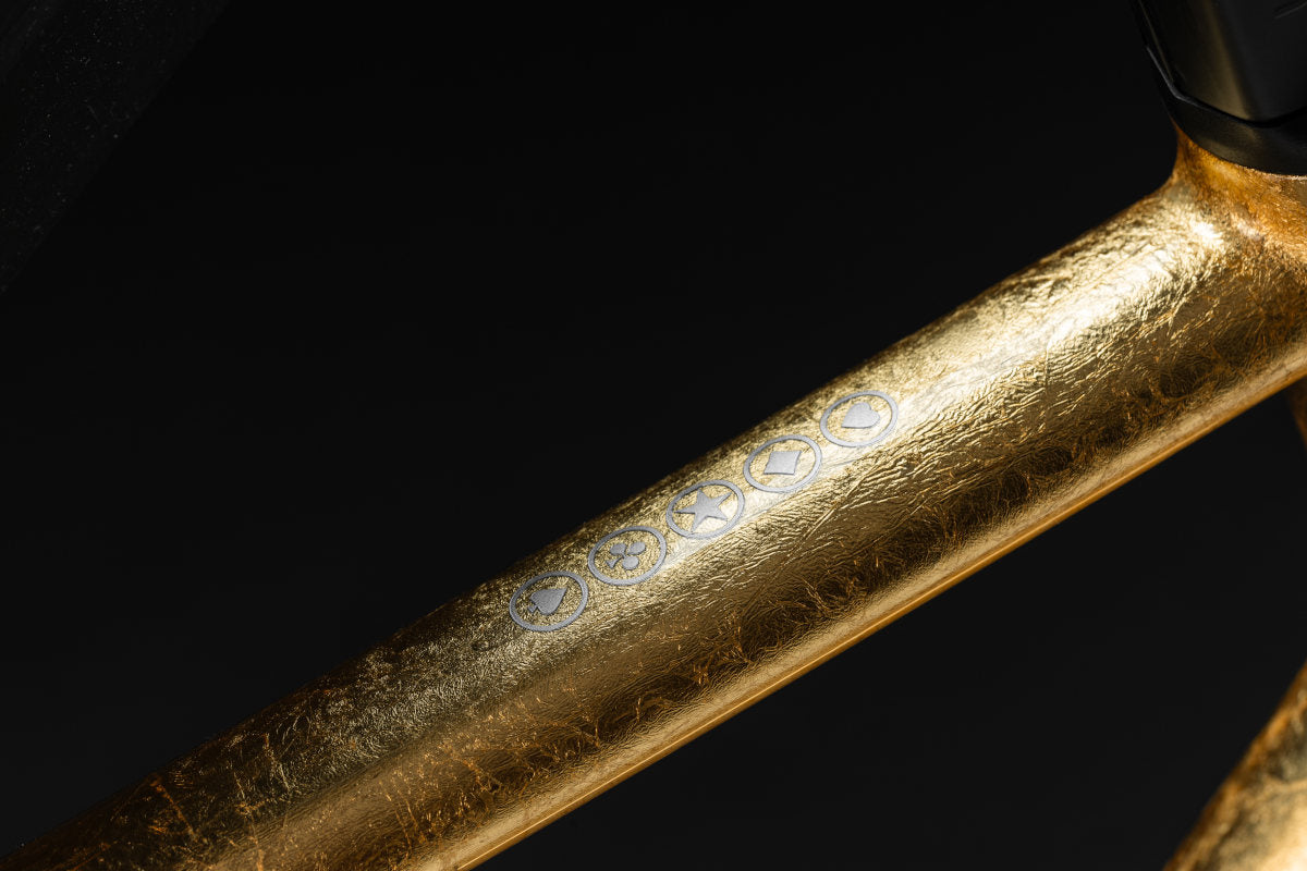 Steel frame, exclusive golden coating, embellished with hand-applied gold leaf Frame: DRALI TRINITY Welding: fillet brazing Fork: DEDA ALL ROAD
