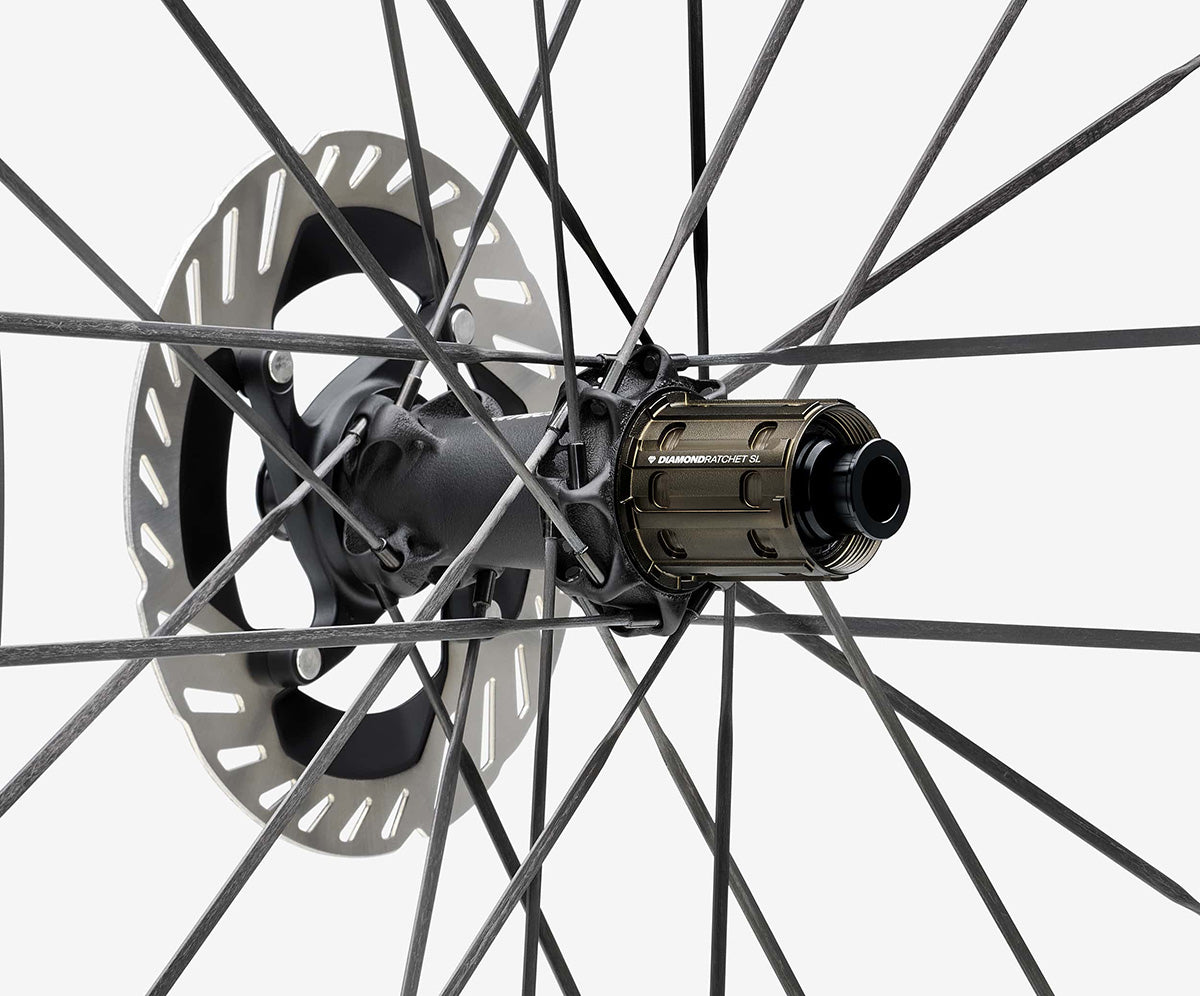 The lightweight Carbonlite Aerospokes provide high lateral stiffness resulting in increased efficiency when accelerating and climbing. The optimized aerodynamic shape of the spoke reduces aerodynamic drag.